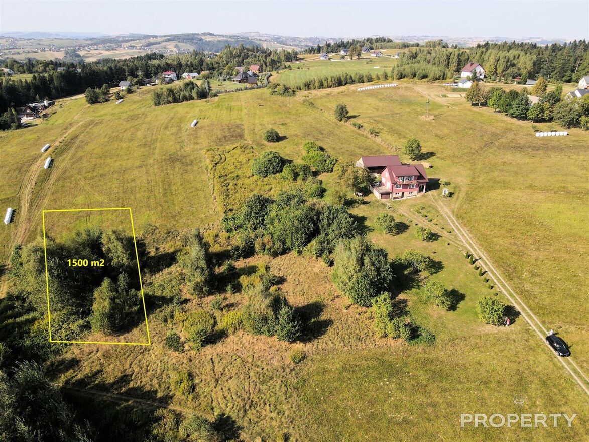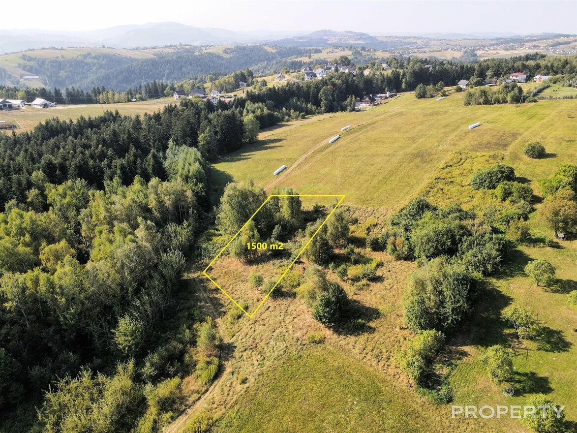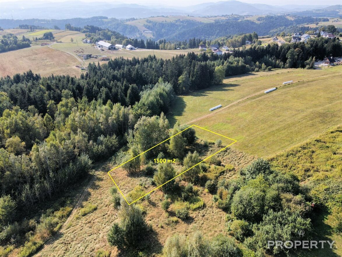 Działka budowlana usytuowana w malowniczym sąsiedztwie lasu, na płaskowyżu górskim, z którego rozpościerają się piękne widoki na okolicę.